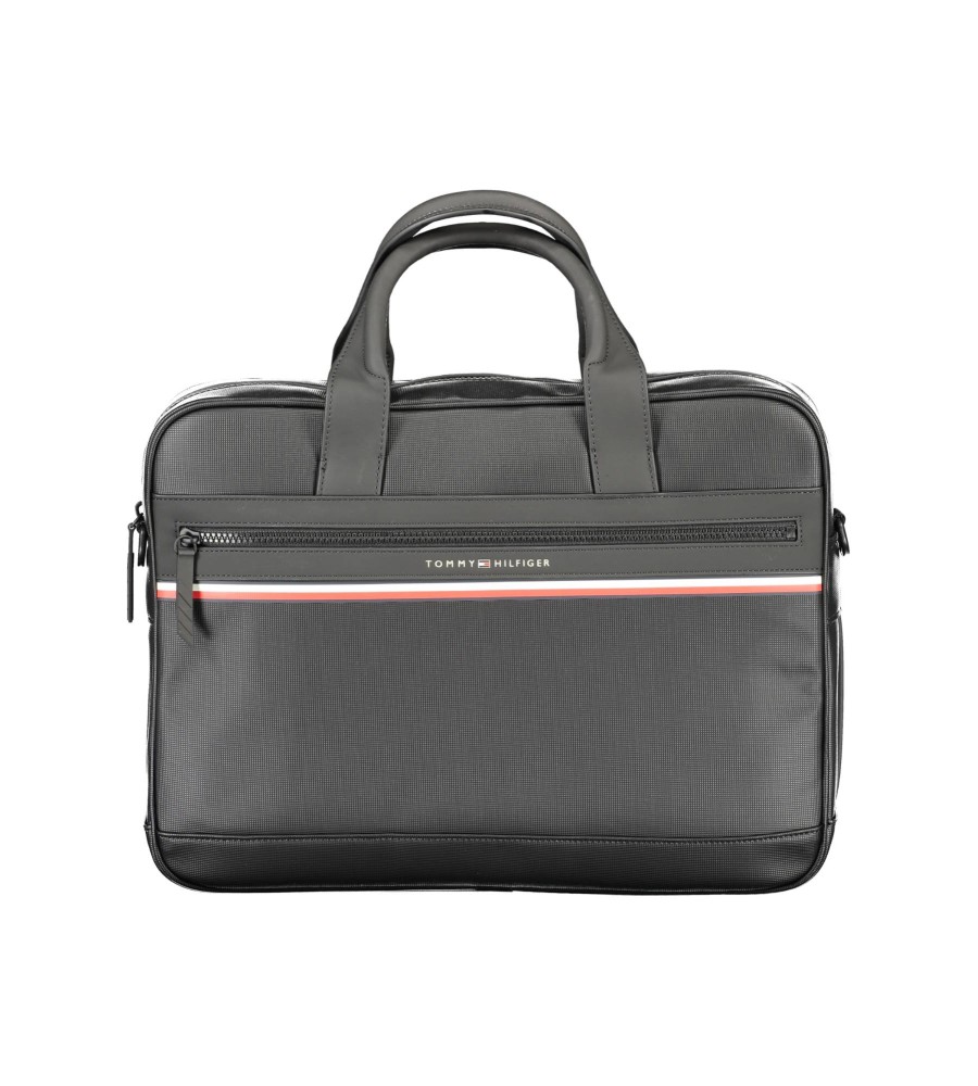 portfelis 2 rankenos, reguliuojamas ir nuimamas pečių dirželis, 1 išorinė kišenė, 1 vidinė kišenė, vidinės vietos dokumentams ir rašiklių laikikliams, vidinė kišenė ant nešiojamojo kompiuterio, kontrastingos detalės, užsegimas užtrauktuku, logotipas