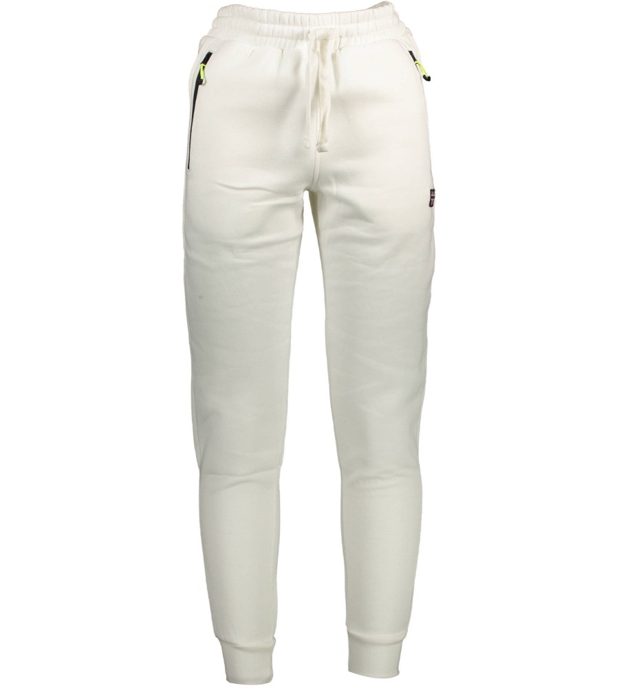 sportiškos kelnės, elastingas juosmuo su raišteliais, guma ties kulkšnies, 2 užtrauktuku užsegamos kišenės, 1 užpakalinė kišenė, siuvinėjimas, kontrastingos detalės, logotipas