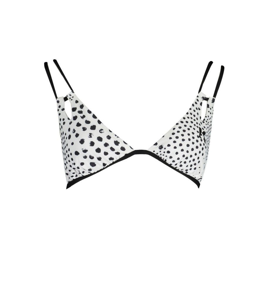 trikampis maudymosi kostiumėlis, pamušalas vidus, nuimamas paminkštinimas, užsegimas kaklu, užsegimas, kontrastingos detalės, spauda, ​​logotipas