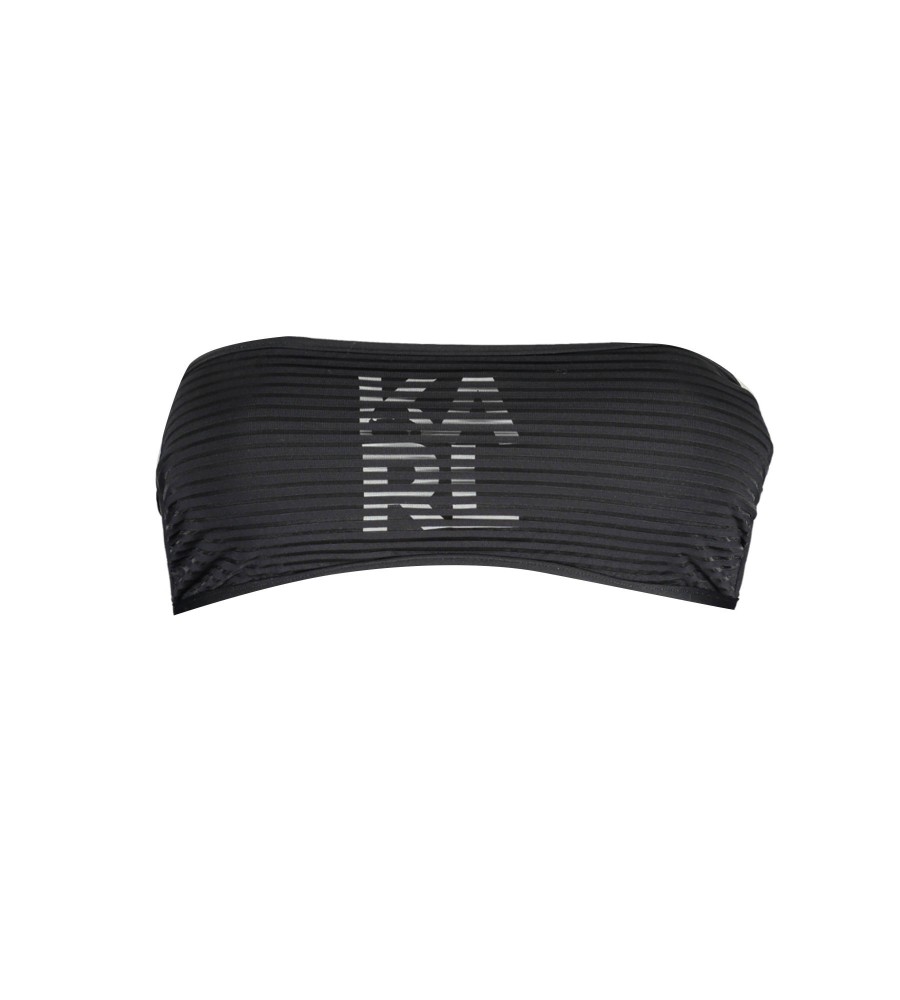 bandeau maudymosi kostiumėlis, pamušalu vidus, nuimamas paminkštinimas, užsegimas kaklu, užsegimas, kontrastingos detalės, spauda, ​​logotipas