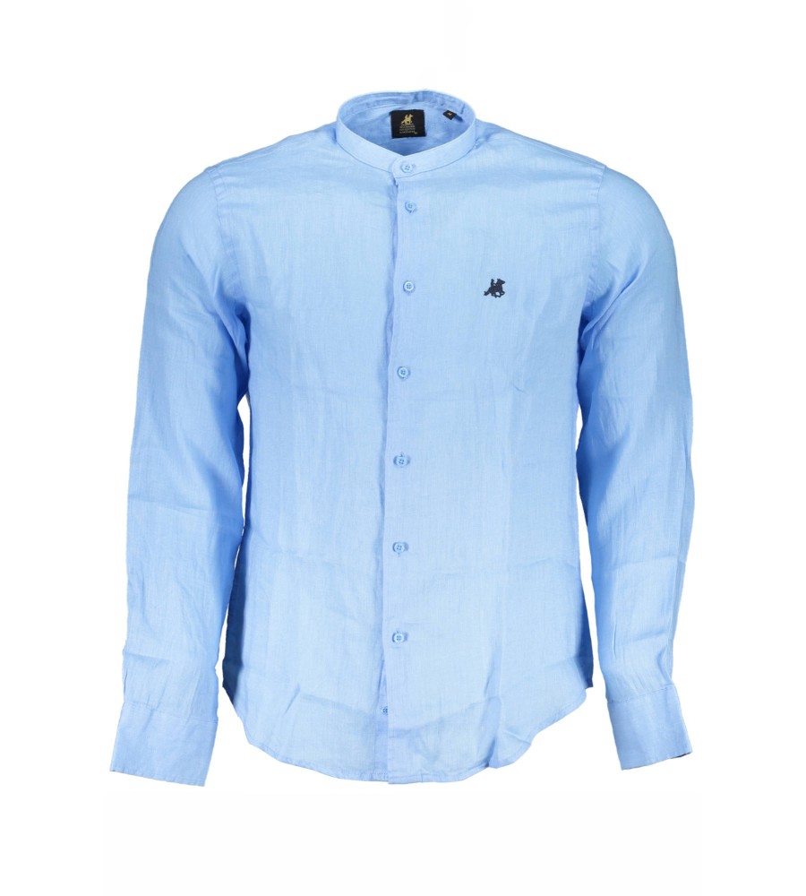 marškiniai ilgomis rankovėmis, mandarinų apykaklė, 1 sagos rankogaliai, siuvinėjimas, logotipas