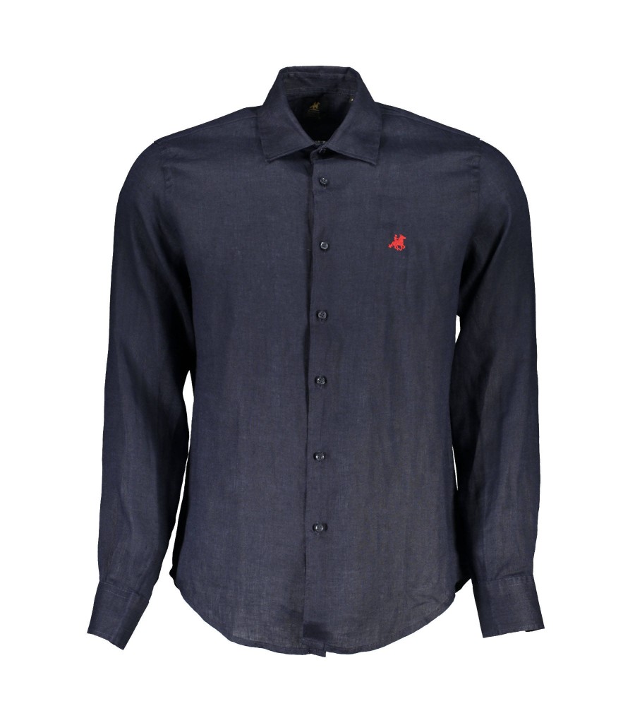 marškiniai ilgomis rankovėmis, užsegama apykakle, 1 sagos rankogaliai, siuvinėjimas, logotipas