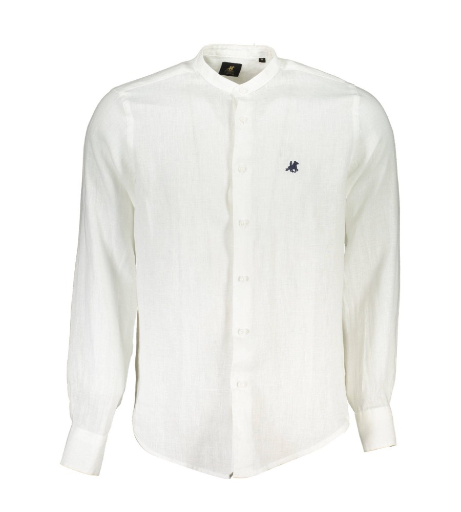 marškiniai ilgomis rankovėmis, mandarinų apykaklė, 1 sagos rankogaliai, siuvinėjimas, logotipas