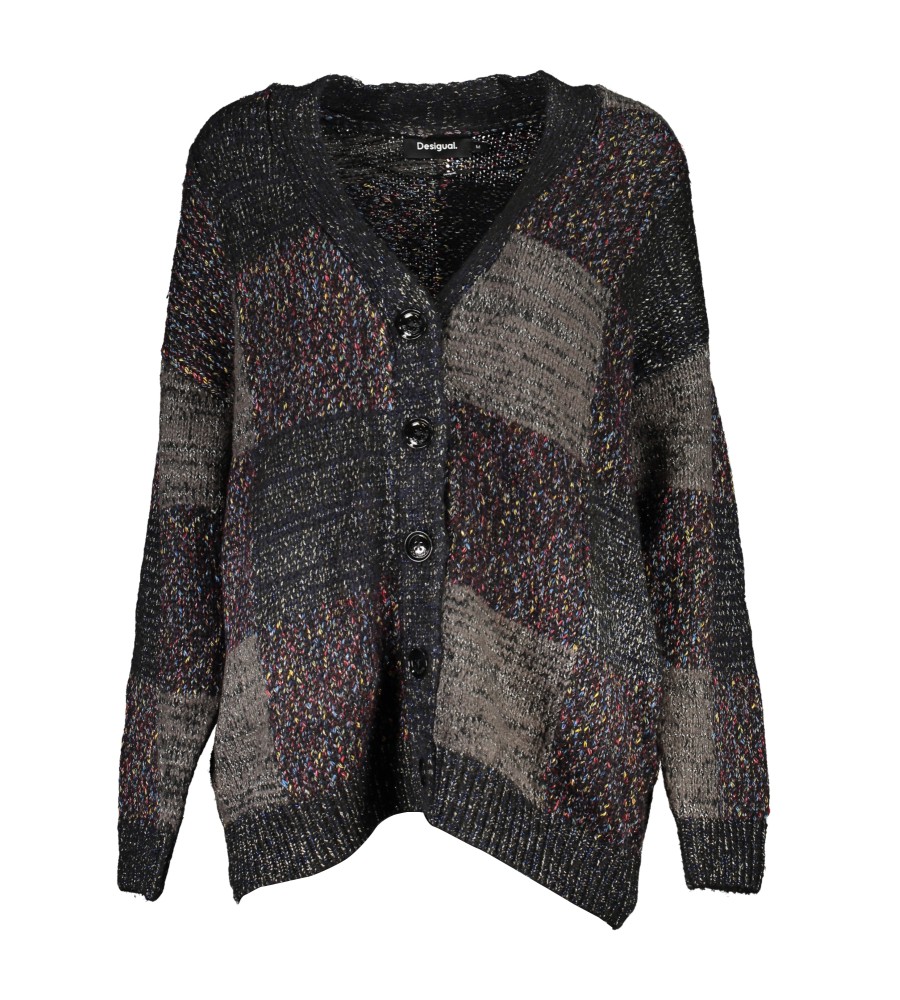 KARDIGANAS ILGOMIS RANKOVĖMIS, "V" kakleliu. 5 MYGTUKAI, KONTRASTAS, logotipas