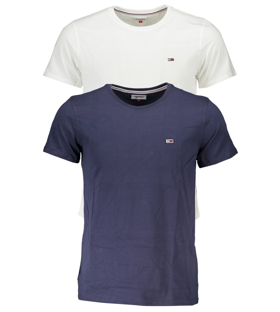 MARŠKINĖLIAI TRUMPĖMIS RANKOVĖMIS, BALTAI/MĖLYNAI, BI PAKETĖS, SLIM FIT, SLIMUS KAKLAS, SIUVINĖJIMAS, logotipas, 100 % PEREINAMOJO MEDVILNĖ