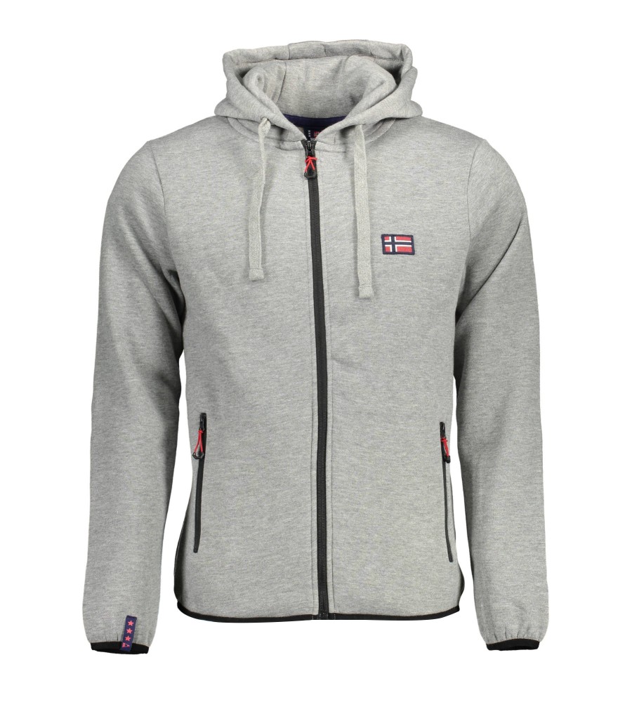 megztinis ilgomis rankovėmis su gobtuvu, užtrauktuku, 2 išorinės kišenės su užtrauktuku, 2 vidinės kišenės, siuvinėjimas, kontrastingos detalės, logotipas