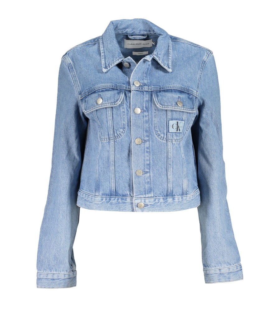 APkarpytas džinsinis striukė ILGOMIS RANKOMIS, 2 MAŽOS KIŠENĖS, APRAŠYMAS, logotipas, 20% PERDIRBTA MEDVILNĖ