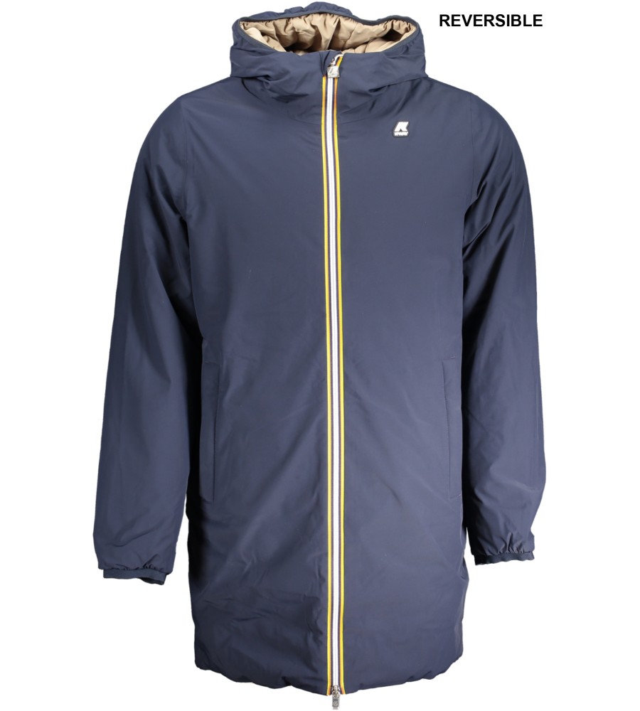 Striukė ILGOMIS RANKOVĖMIS SU gobtuvu, apverčiama mėlyna/smėlio spalva, 2 IŠORINĖS KIŠENĖS, 2 ​​VIDINĖS KIŠENĖS, TAIKYMAS, ZIP, logotipas