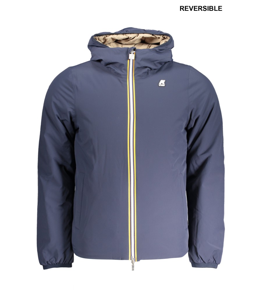 Striukė ILGOMIS RANKOVĖMIS SU gobtuvu, apverčiama mėlyna/smėlio spalva, 2 IŠORINĖS KIŠENĖS, 2 ​​VIDINĖS KIŠENĖS, TAIKYMAS, ZIP, logotipas