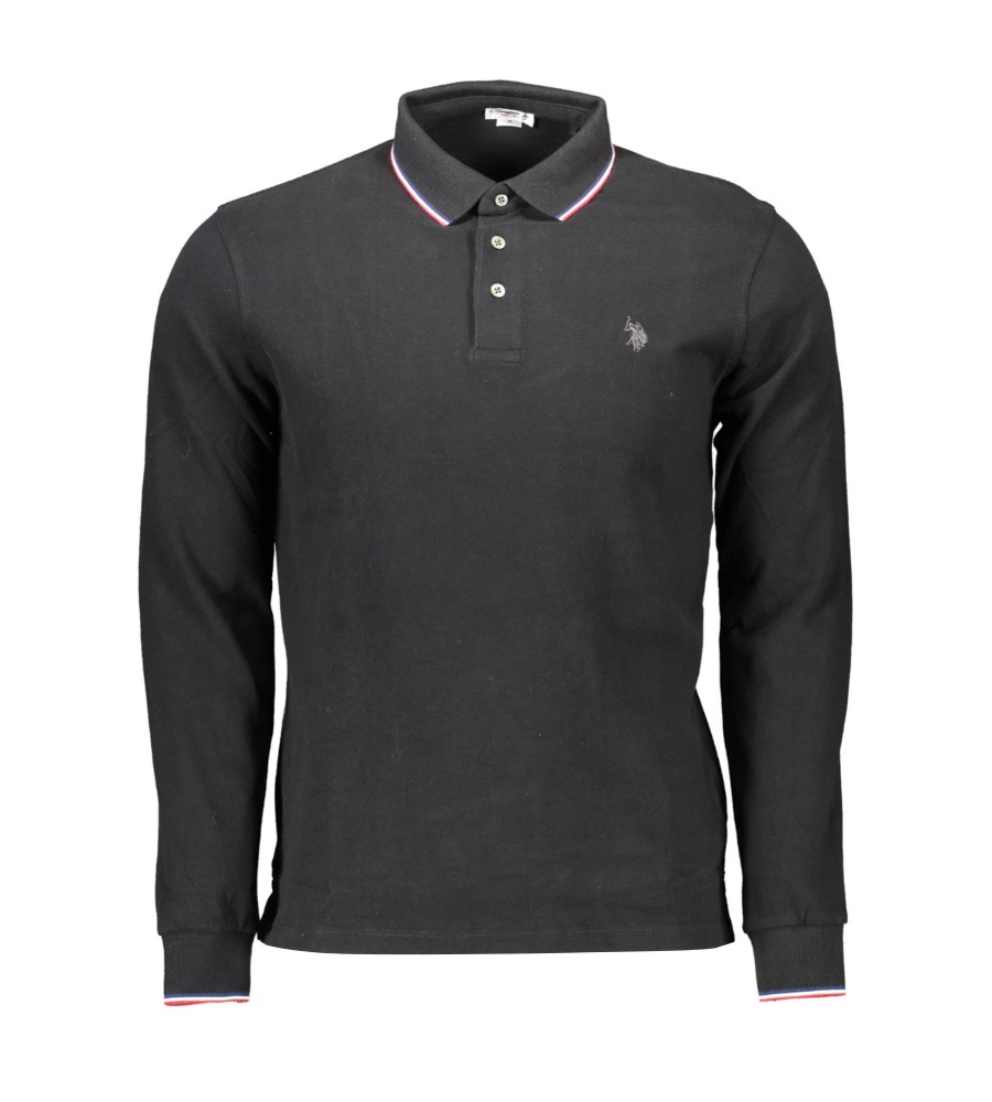 polo marškinėliai ilgomis rankovėmis, 3 sagos, kontrastingos detalės, siuvinėjimas, logotipas