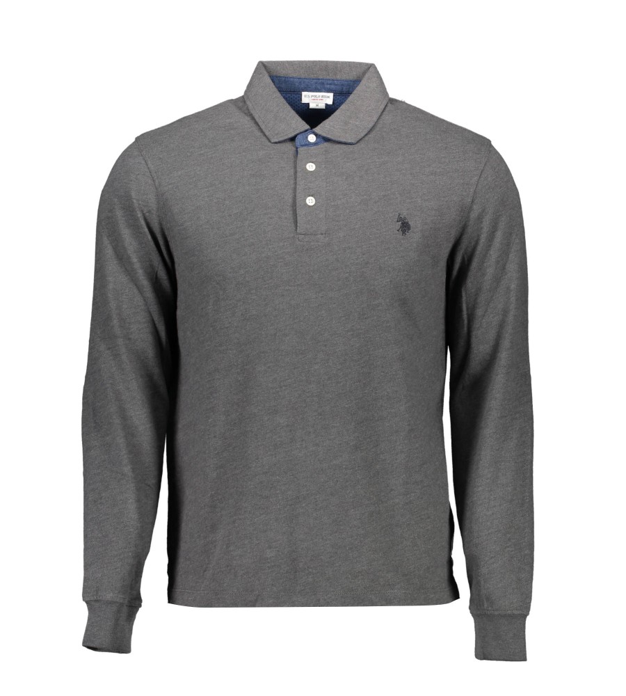 polo marškinėliai ilgomis rankovėmis, 3 sagos, lopai ant alkūnių, kontrastingos detalės, logotipas