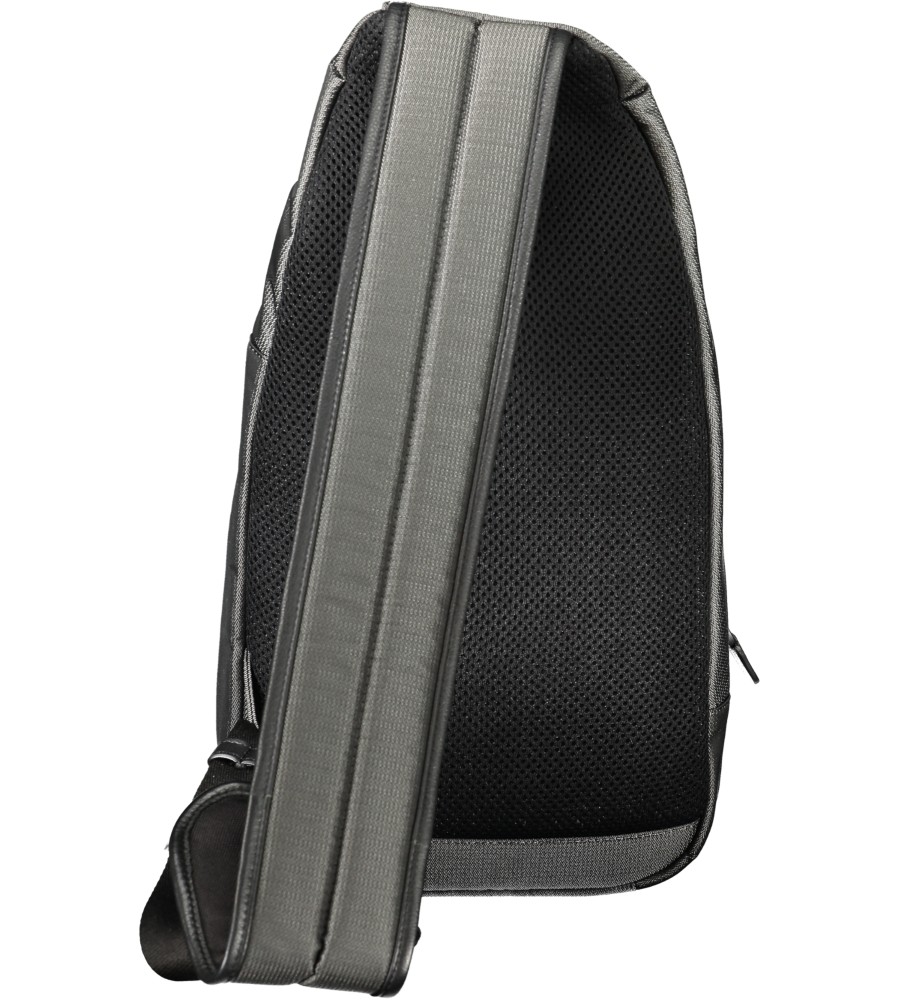 Vieno pečių krepšys su perkeliamumu kaip marsuppy, reguliuojamas pečių dirželis, 3 išorinės kišenės, 1 vidinė planšetinio kompiuterio kišenė, kontrastingos detalės, užtrauktuko uždarymas, logotipas, logotipas