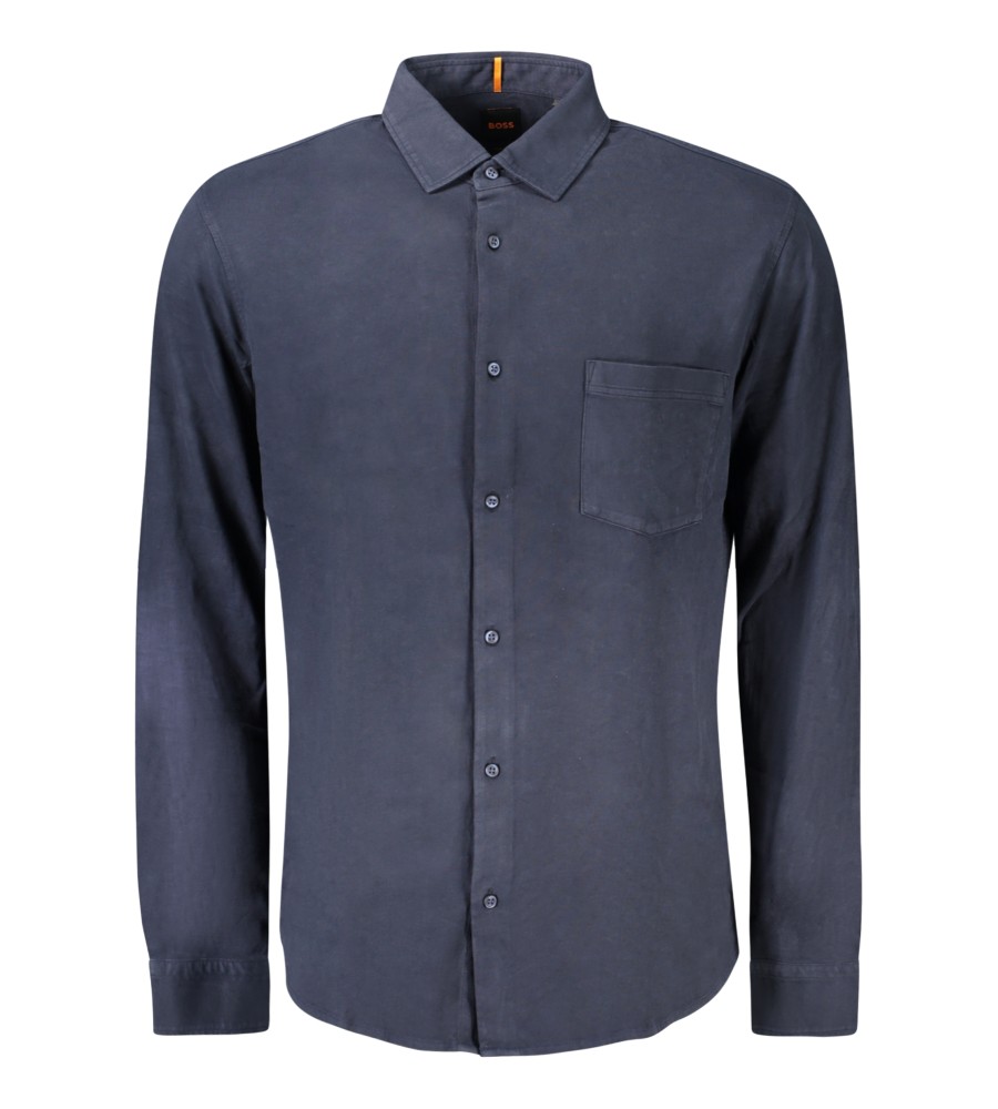 Marškiniai ilgomis rankovėmis, prancūziška apykaklė, 1 mygtuko rankogaliai, 1 kišenė, mygtukai, logotipas