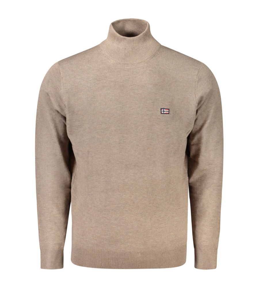 Ilgas megztinis, aukštas kaklas, siuvinėjimas, logotipas