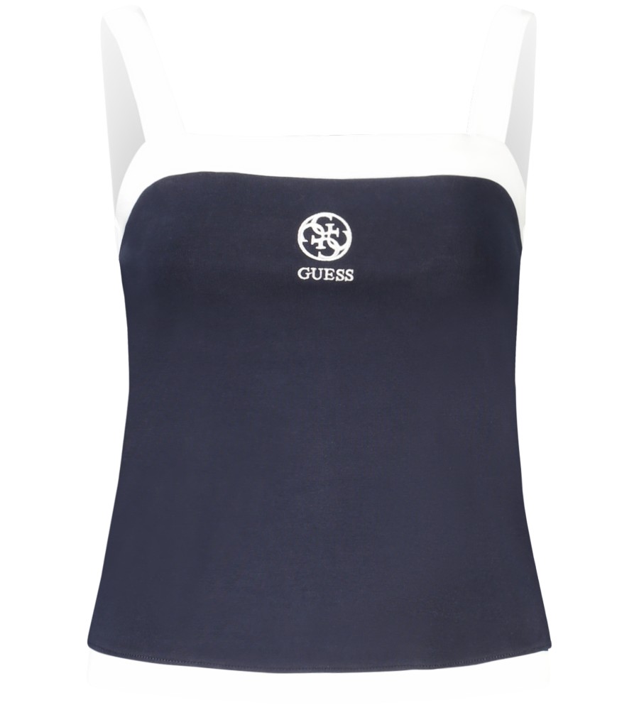 Tanko viršus, platūs dirželiai, kontrastingos detalės, siuvinėjimas, logotipas, ekologiška medvilnė