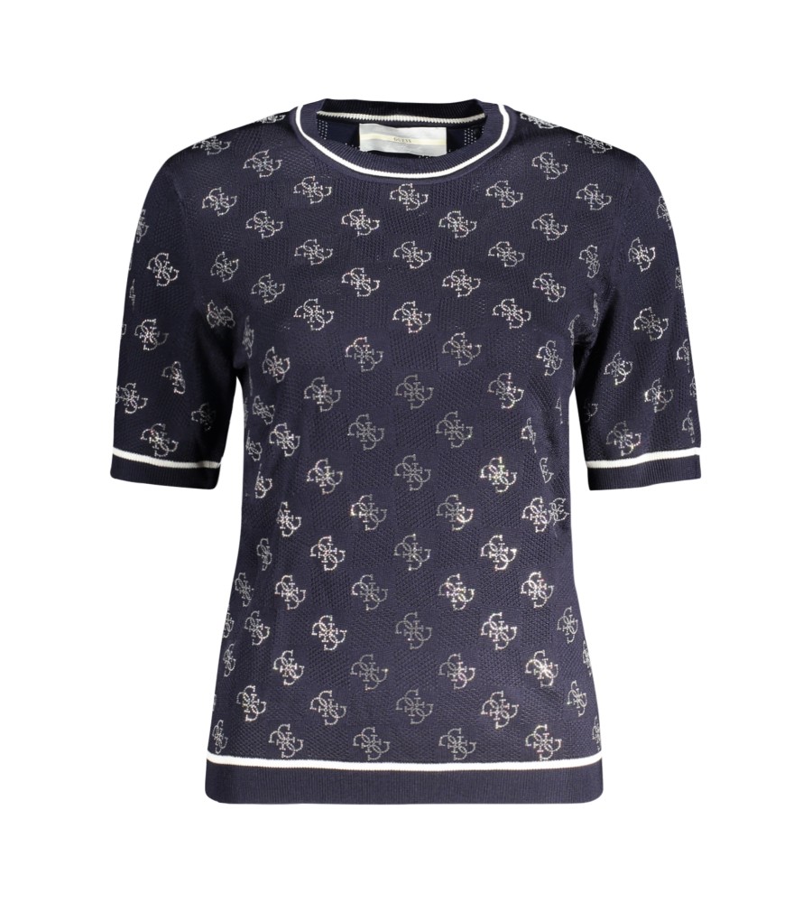 Trumpas megztinis, įgulos kaklas, kontrastingos detalės, siuvinėjimai, programos, kalnų akmenys, logotipas
