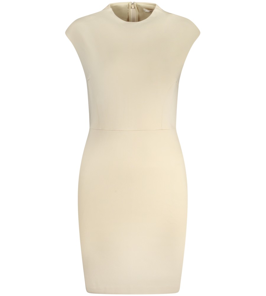 Trumpa suknelė, be rankovių, įgulos kaklas, užpakalinis užtrauktukas, logotipas