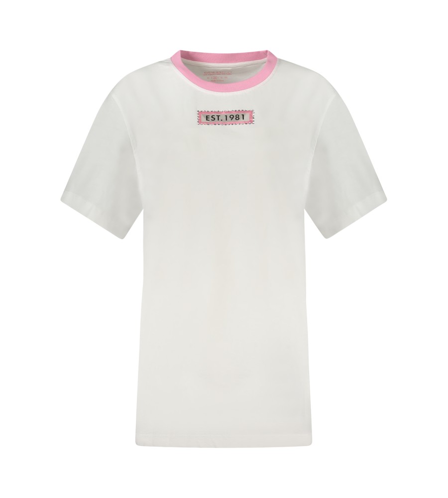 „Maxi“ marškinėliai trumpos rankovės, įgulos kaklas, kontrastingos detalės, spausdinimas, programos, rhinestones, logotipas, ekologiška medvilnė