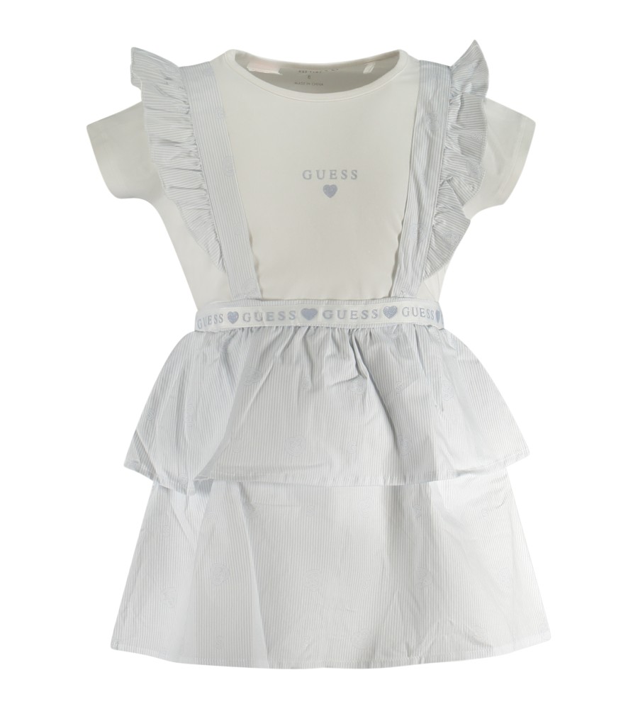 2, trumpų rankovių marškinėlių rinkinys, įgulos kaklas, spausdinimas, blizgučiai, dryžuotas trumpas sijonas su reguliuojamais petnešomis, logotipas