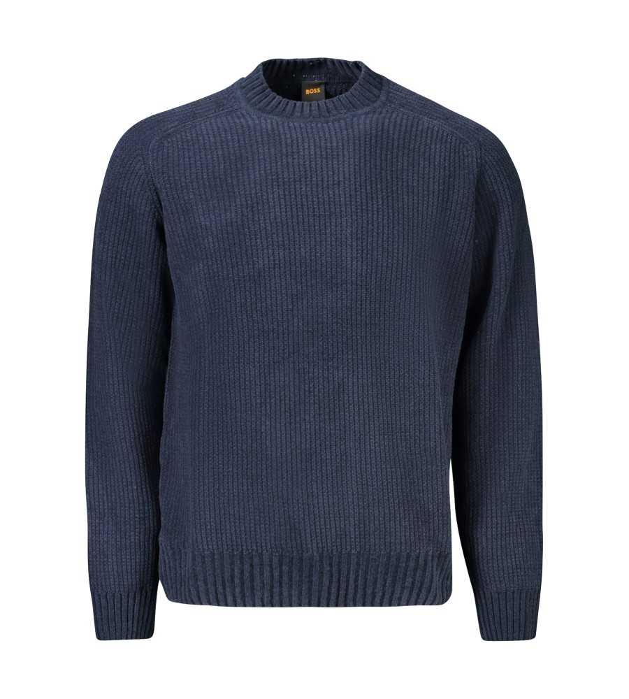 „Chenille“ megztinis ilgomis rankovėmis, įgulos kaklas, logotipas