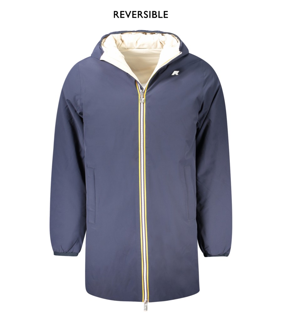 Ilga striukė su ilgomis rankovėmis ir gaubtu, grįžtama mėlyna/smėlio spalvos, paminkštinta, 2 išorinės kišenės, 2 vidinės kišenės, kontrastingos detalės, ZIP, taikymas, logotipas