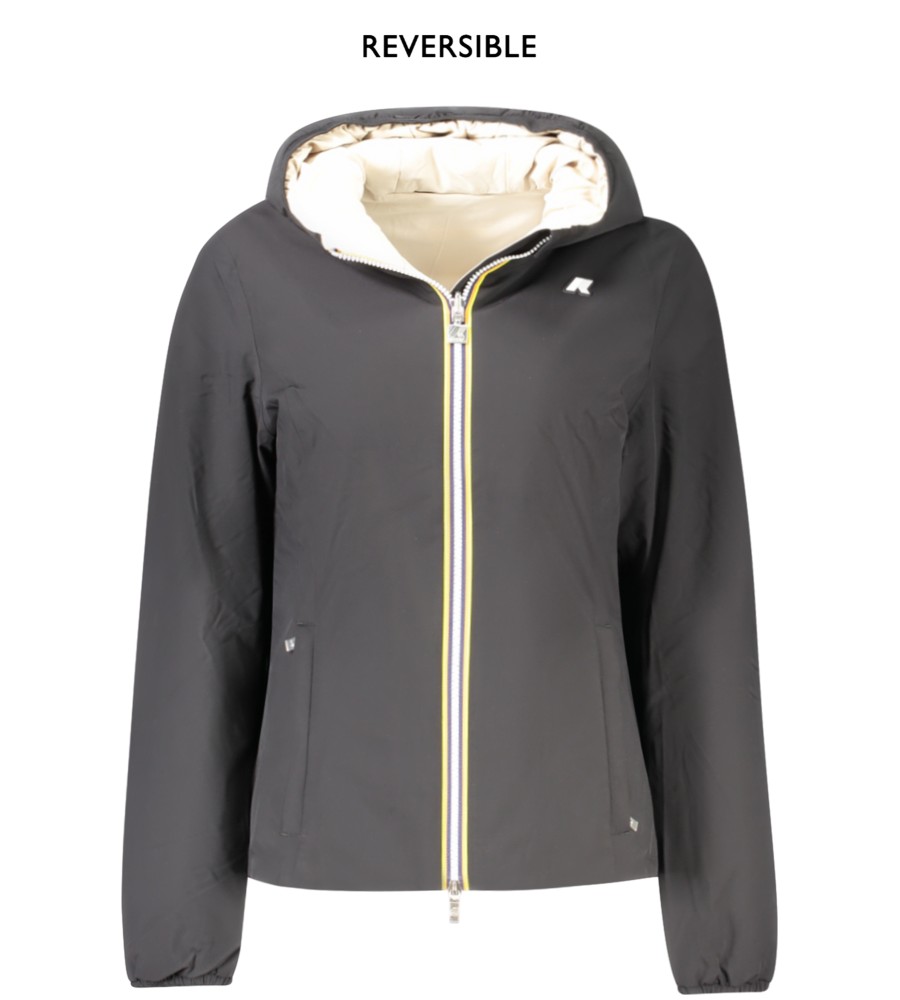 Striukė ilgomis rankovėmis su gaubtu, grįžtama juoda/smėlio spalvos, paminkštinta, 2 išorinės kišenės, 2 vidinės kišenės, kontrastingos detalės, ZIP, taikymas, logotipas