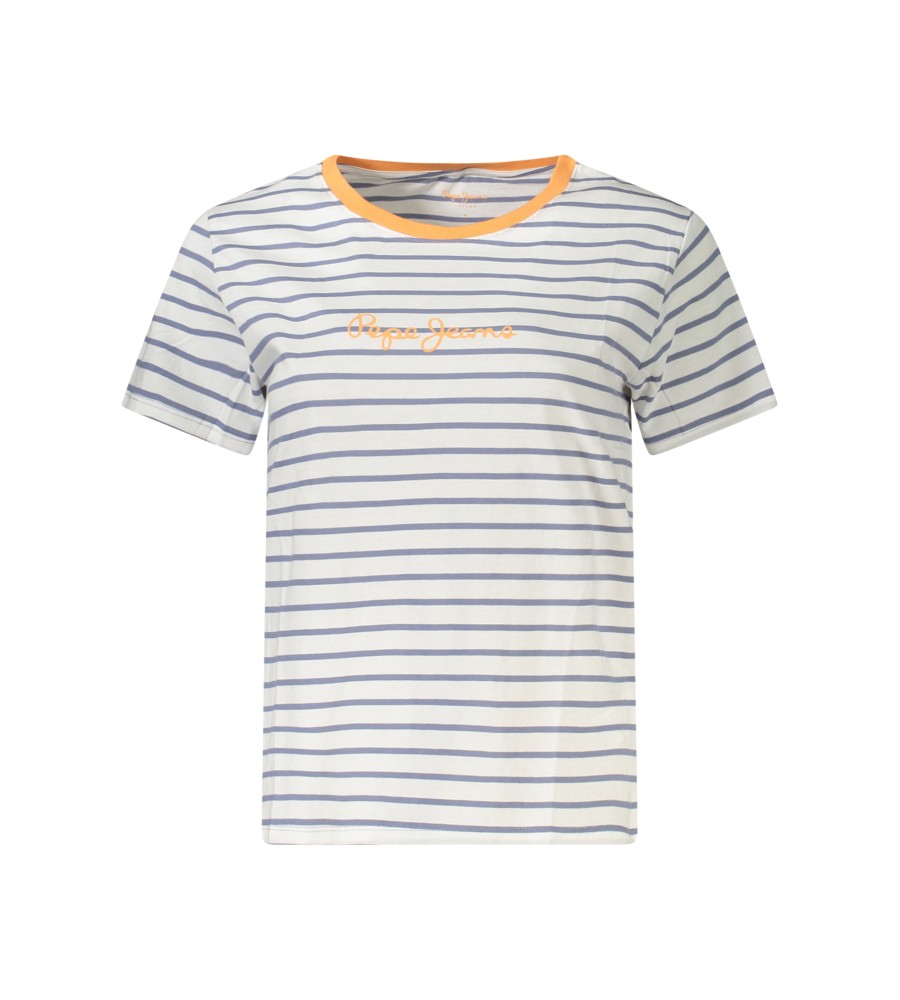 Dryžuoti marškinėliai trumpomis rankovėmis, įgulos kaklas, kontrastingos detalės, spausdinimas, logotipas, 100% tvari medvilnė