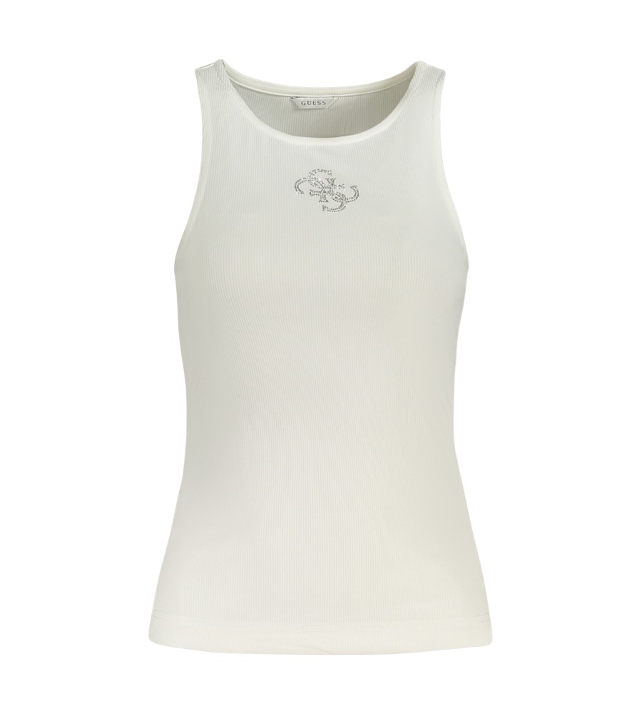 Tanko viršus, platūs dirželiai, plati iškirptė, „Rhinestone“ programos, logotipas