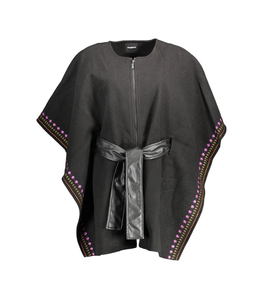 pončas su kaklu, užtrauktukas, diržas, kontrastingos detalės, logotipas