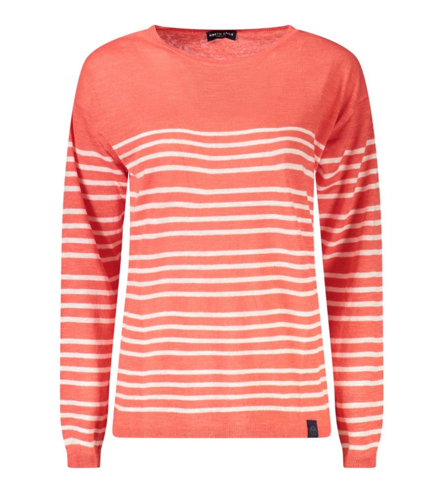 Dryžuoti marškinėliai ilgomis rankovėmis, plati iškirptė, logotipas