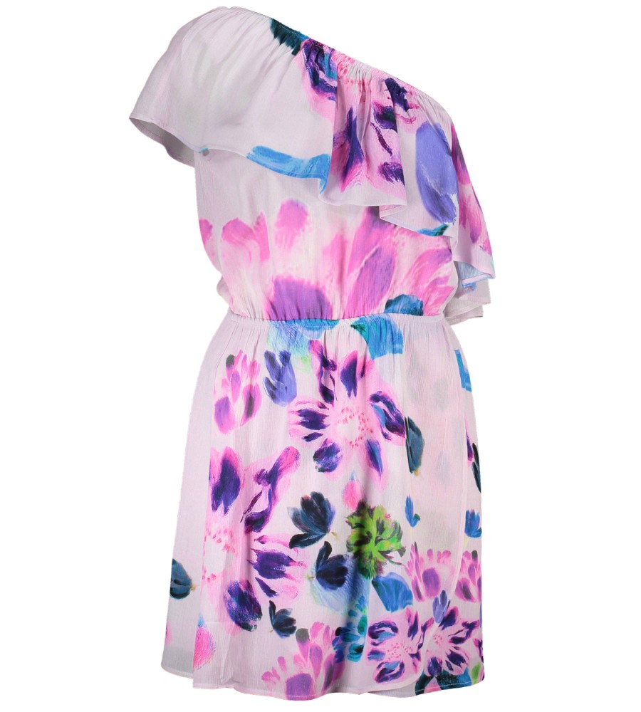 Trumpa suknelė, vienas petys, elastinis juosmuo, išklotos, kontrastingos detalės, logotipas