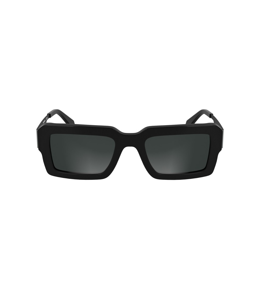 Akiniai nuo saulės, acetato rėmas, stačiakampis objektyvas, juodas objektyvas, objektyvo plotis 52 mm, tilto plotis 20 mm, šventyklos ilgis 140 mm, logotipas
