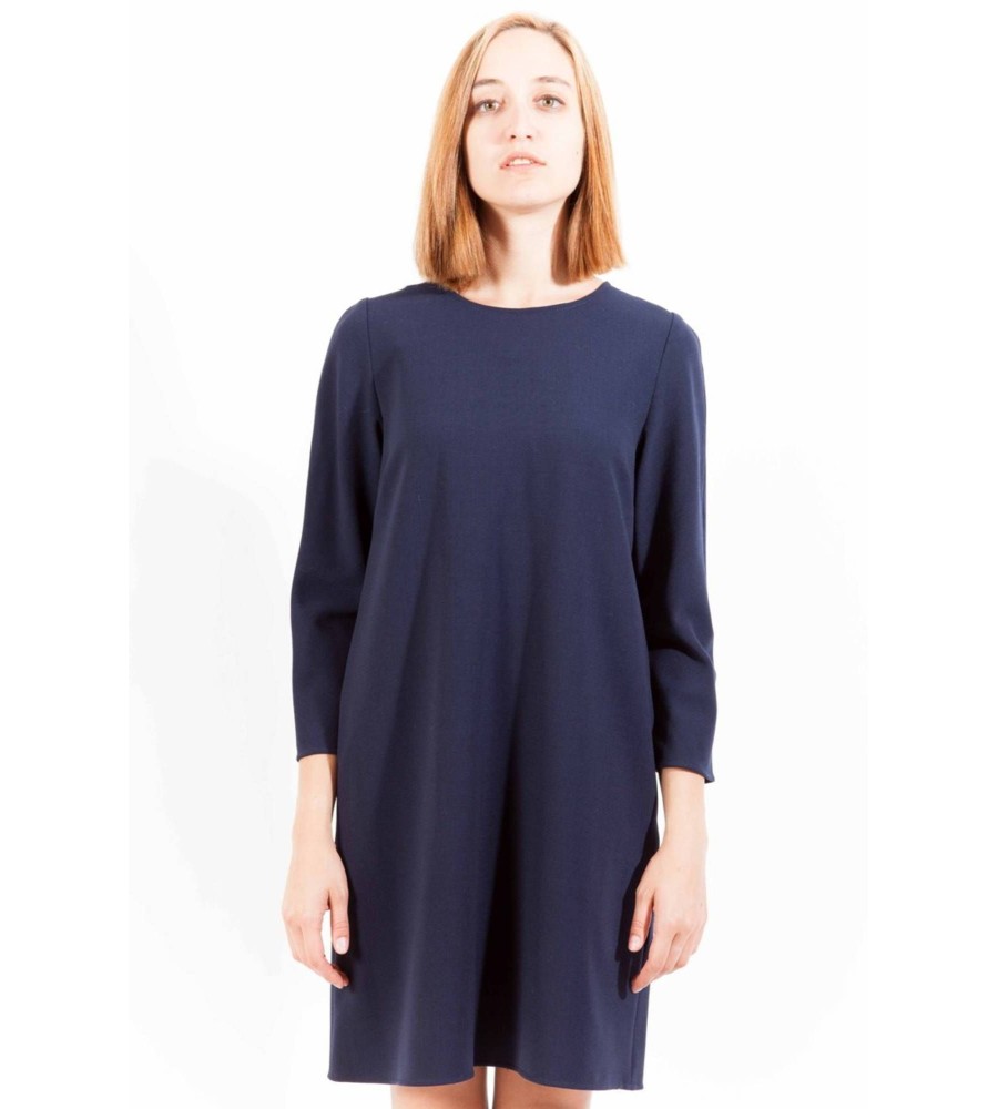 Trumpa suknelė, 3/4 rankovės, apvalus kaklas, logotipas