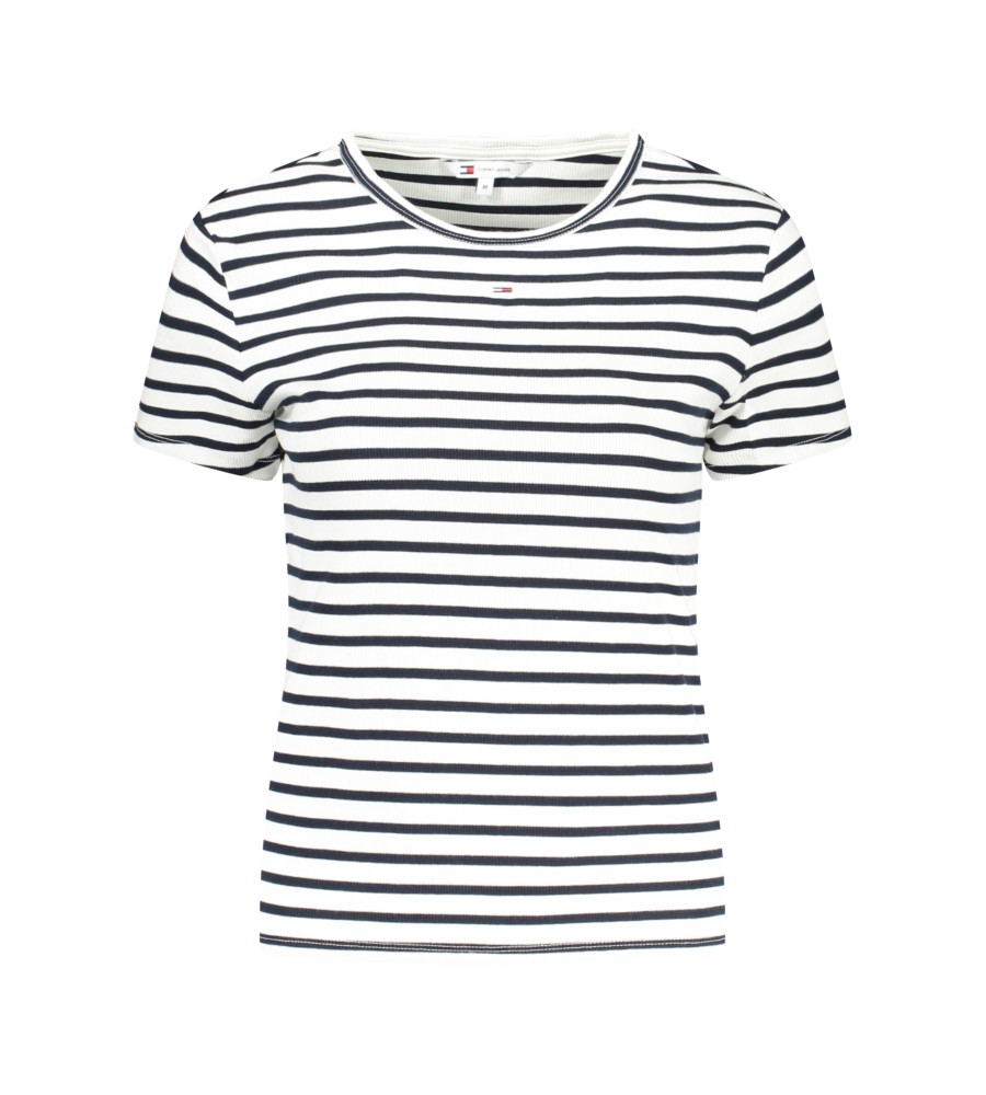Dryžuoti marškinėliai trumpomis rankovėmis, įgulos kaklas, siuvinėjimas, logotipas, 95% regeneracinė medvilnė