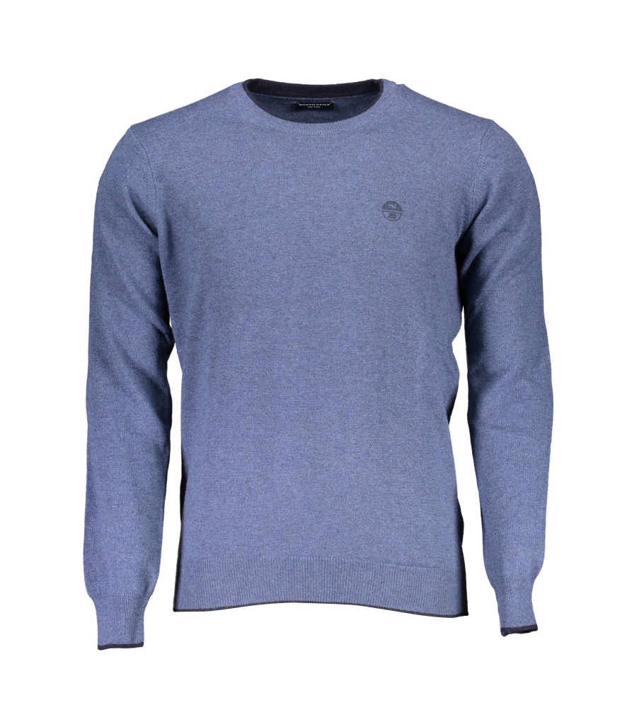 megztinis ilgomis rankovėmis, apvalus kaklas, kontrastingos detalės, siuvinėjimas, logotipas, perdirbtas pluoštas