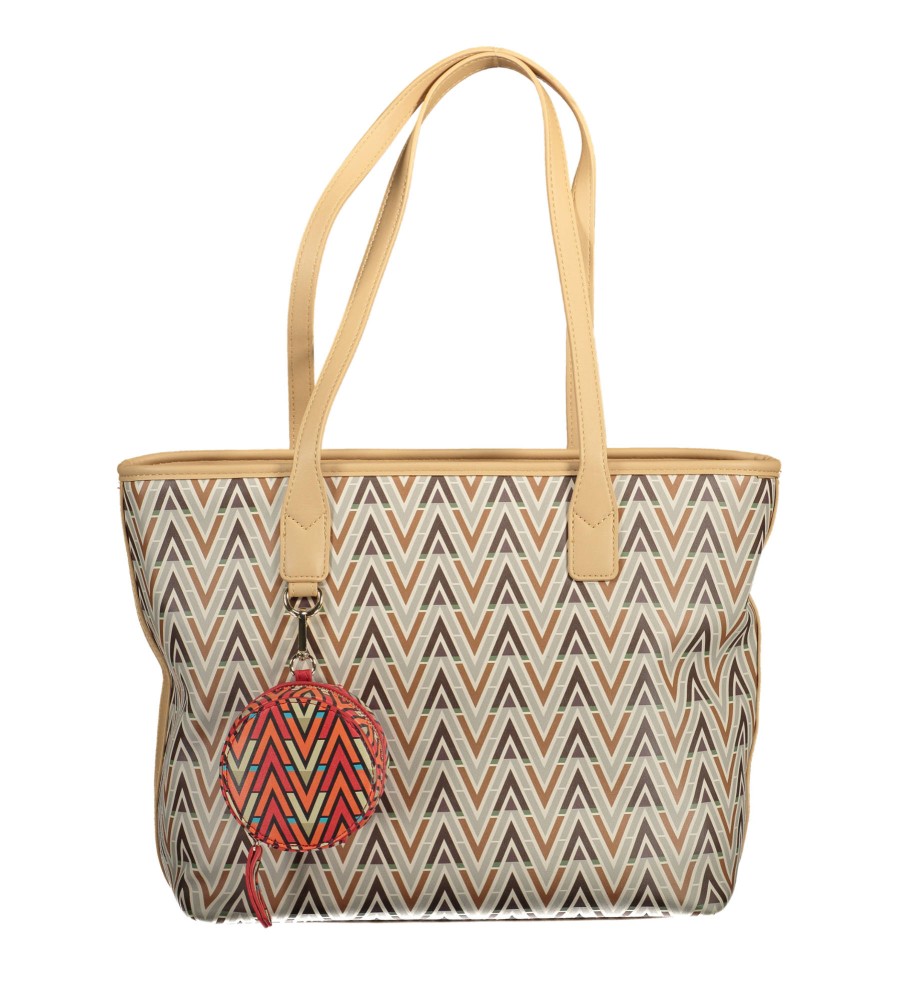 Krepšys su 2 pečių rankenomis, 1 vidinė kišenė, vidinis telefono laikiklis, nuimama monetų piniginė, užtrauktuko uždarymas, logotipas