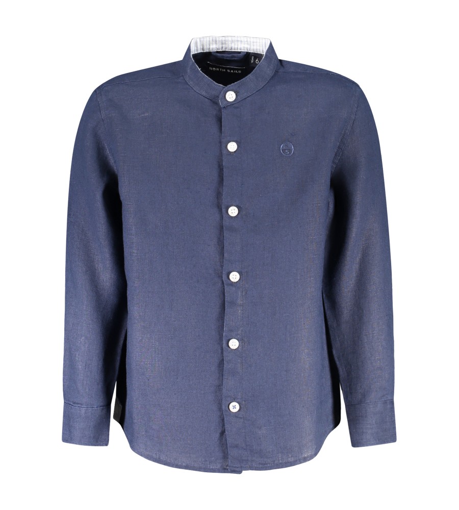 Marškiniai ilgomis rankovėmis, korėjiečių apykaklė, 1 mygtuko rankogalys, mygtukai, kontrastingos detalės, siuvinėjimas, logotipas, teigiamas vandenyne