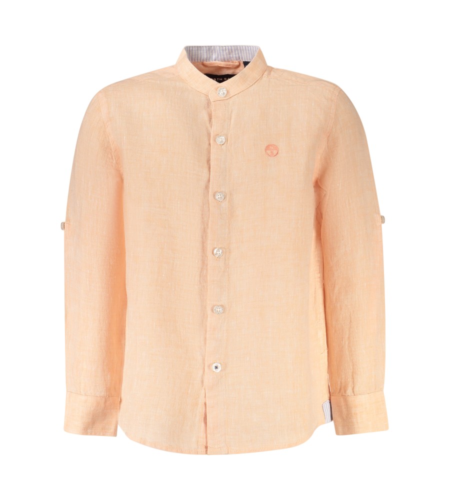 Marškiniai ilgomis rankovėmis, korėjiečių apykaklė, 1 mygtuko rankogalys, mygtukai, kontrastingos detalės, siuvinėjimas, logotipas, teigiamas vandenyne