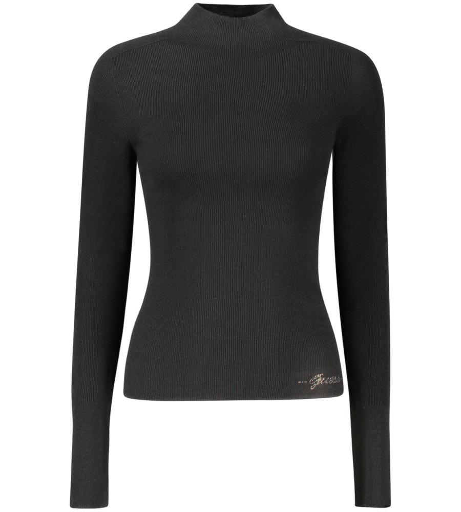 Megztinis ilgomis rankovėmis, aukštas kaklas, „Rhinestone“ programos, logotipas