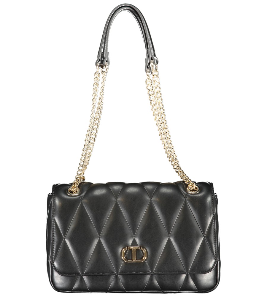 Pečių krepšys, 2 grandinės rankenos, 1 vidinė kortelių kišenė, kontrastingos detalės, spragtelėjimo uždarymas, logotipas