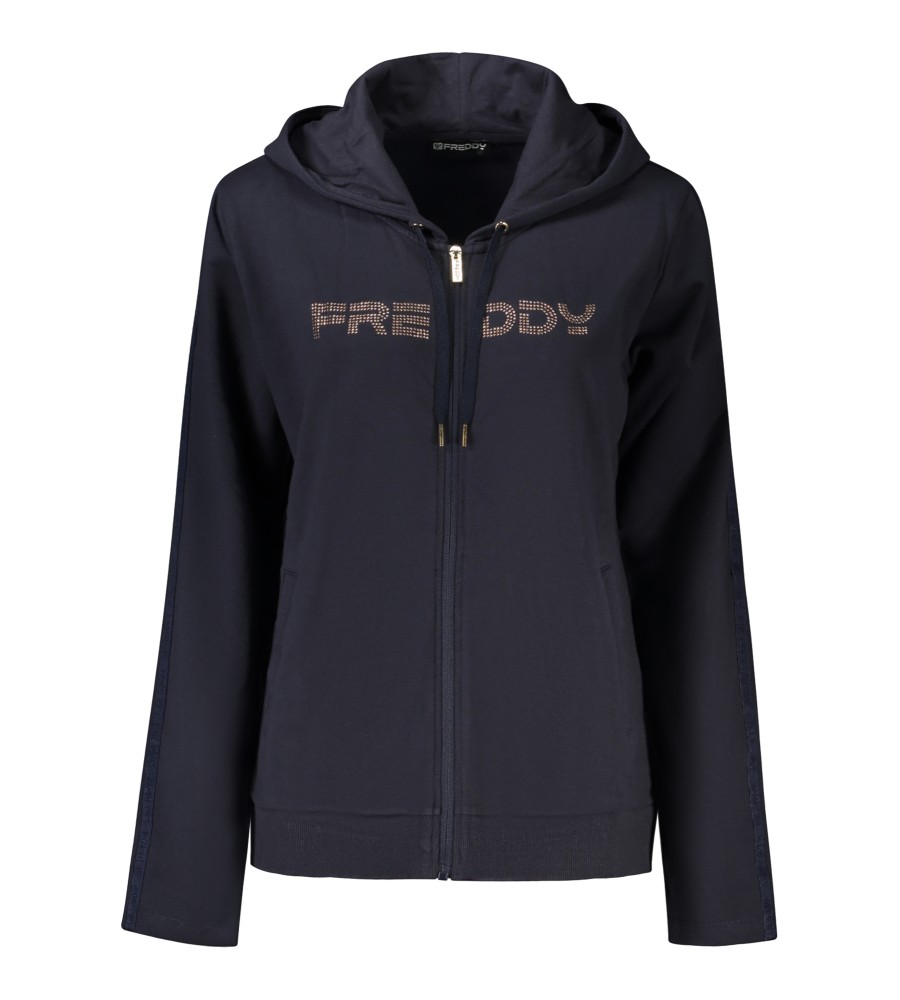 Hoodie ilgomis rankovėmis, megztinis, 2 kišenės, užtrauktukas, „Rhinestone“ programa, logotipas