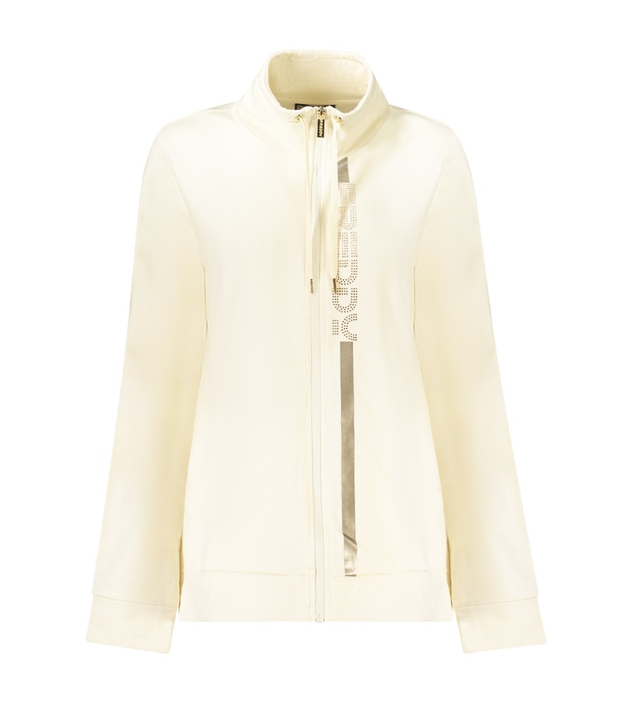 Megztinis ilgomis rankovėmis, megztinis, 2 kišenės, užtrauktukas, „Rhinestone“ programa, logotipas