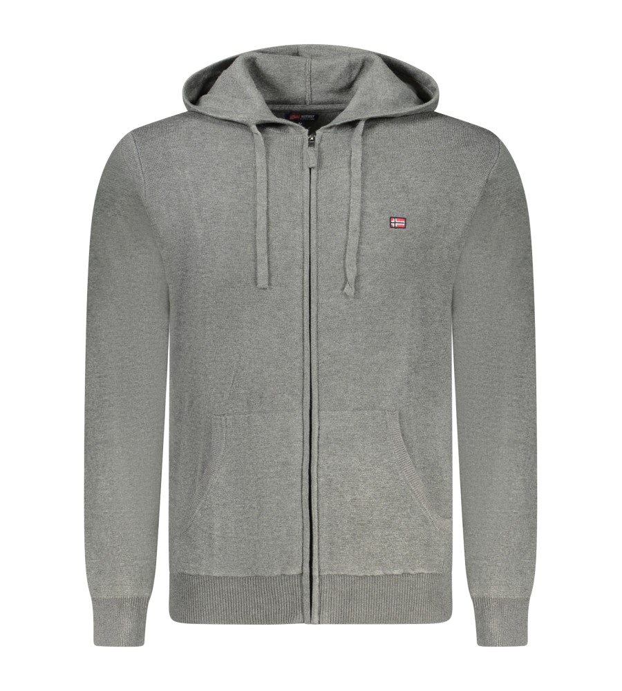KARDIGANAS ILGOMIS RANKOMIS SU gobtuvu, 2 CENTRINĖS KIŠENĖS, ZIP, SIUVINĖJIMAS, LOGOTIPA