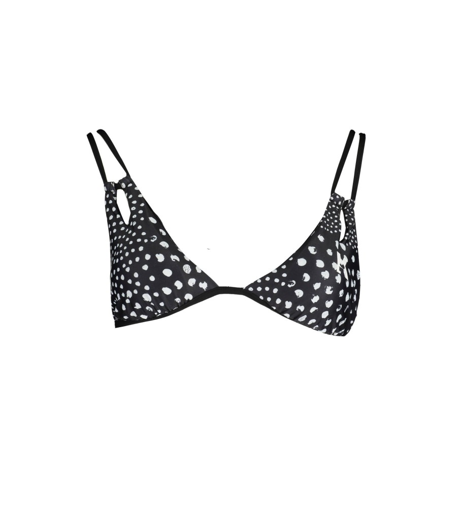 trikampis maudymosi kostiumėlis, pamušalas vidus, nuimamas paminkštinimas, užsegimas kaklu, užsegimas, kontrastingos detalės, spauda, ​​logotipas
