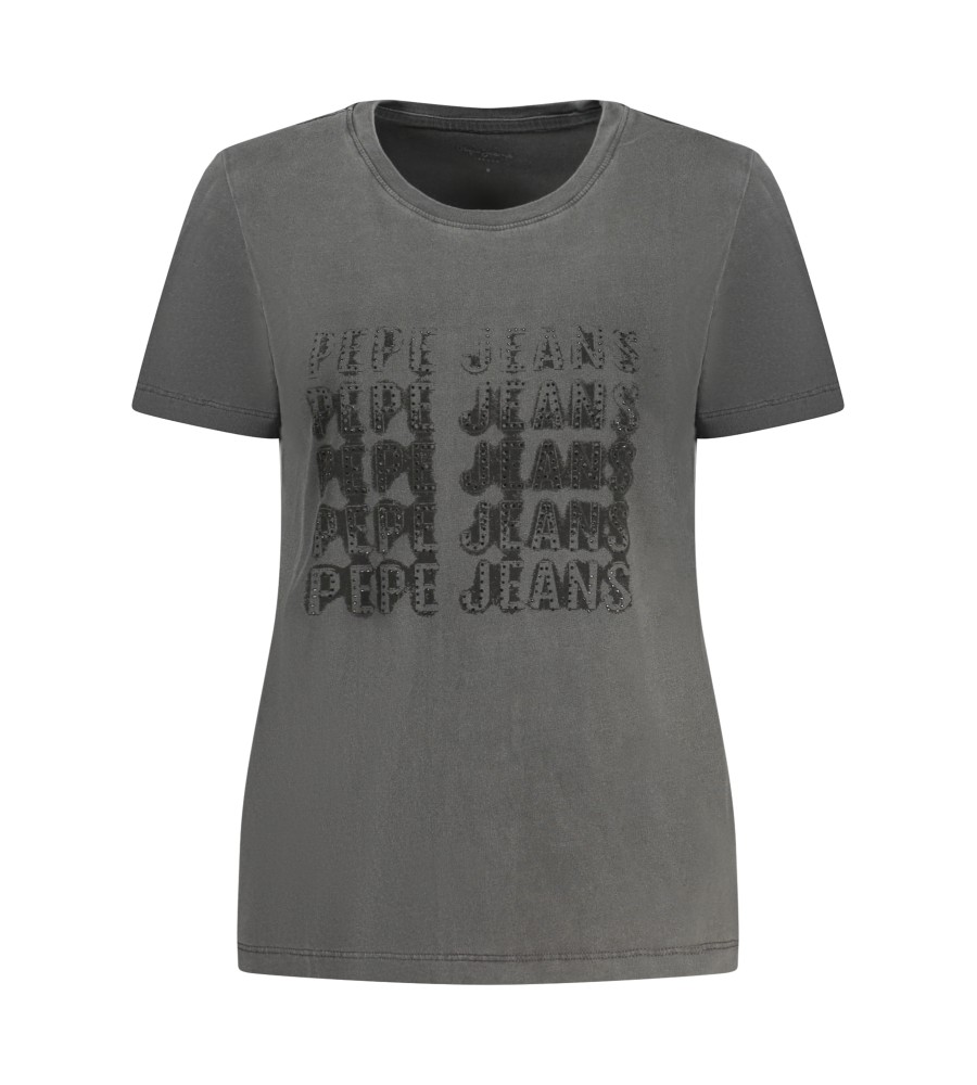 MARŠKINĖLIAI TRUMTOMIS RANKOVOMIS, ĮGALUS KAKLAS, PLAUTAS EFEKTAS, spauda, ​​Kalnų krištolinio akmens aplikacijos, logotipas, 100 % TANI MEDVILNĖ
