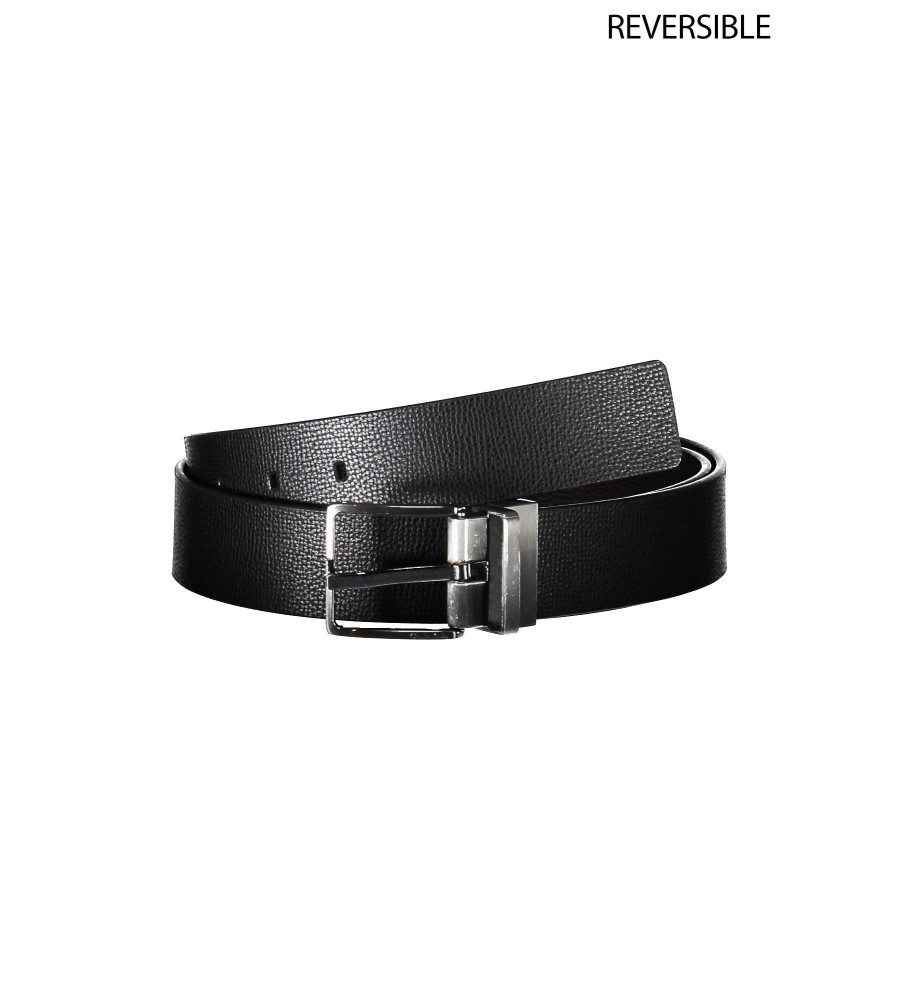 apverčiamas odinis diržas, juodas/rudas, metalinė sagtis, logotipas