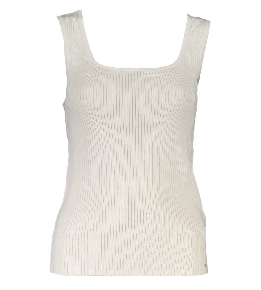 apatinis trikotažas su plačiais petnešėlėmis, plačia iškirpte, kontrastingomis detalėmis, logotipu, 50 % lęšių modalu