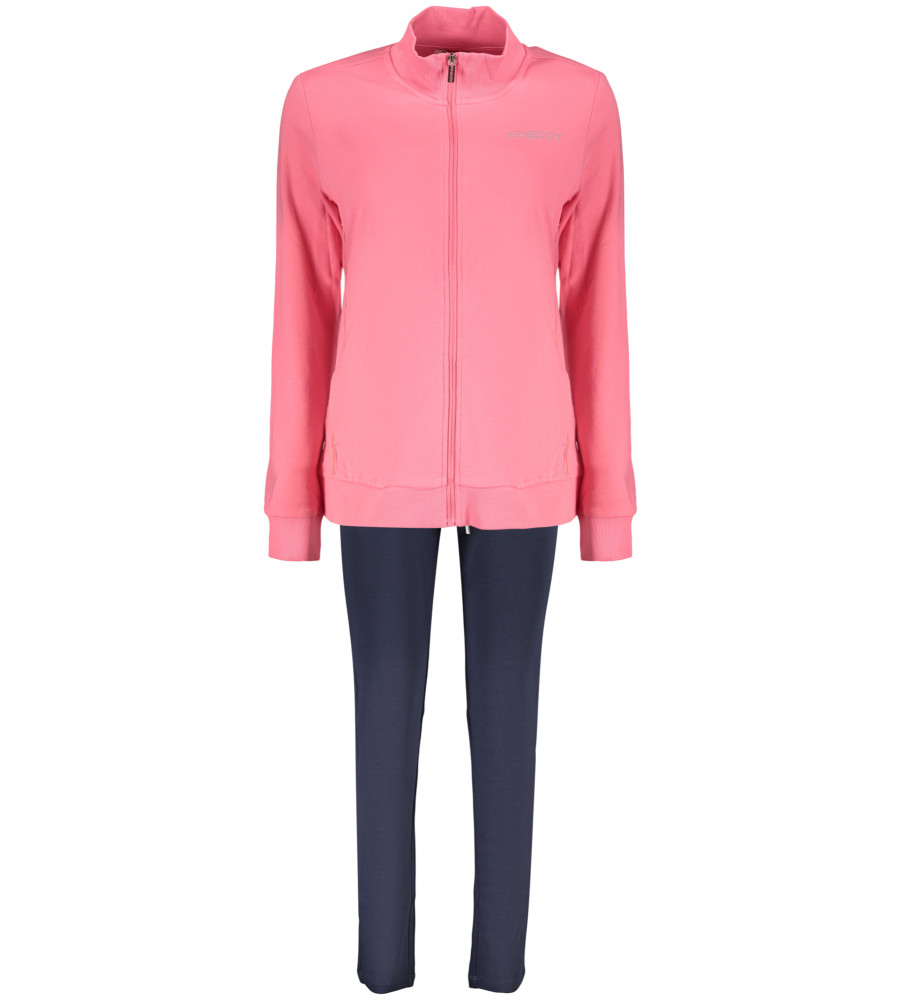 MEGZZINIŲ IR KELNŲ RINKINYS, RŪŽOS MESKLINIAI ILGARANOVĖMIS, 2 KIŠENĖS, užtrauktukas, KONTRASTINĖS DETALĖS, MĖLYNOS SPORTINĖS KELNĖS, ELASTINIS JUOSUMAS SU NĖRINIAIS, Kalnų krištolinio akmens aplikacija, spauda, ​​logotipas