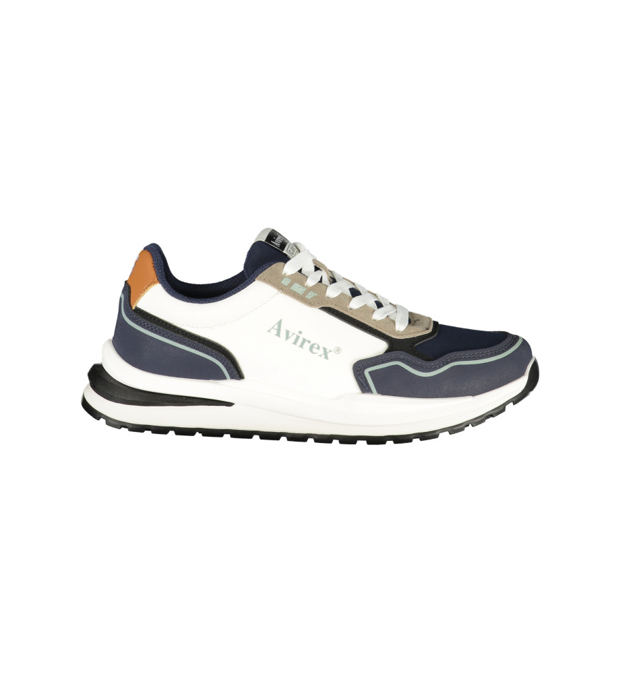 SPORTINIAI BALTAI SU RAISTELĖMIS, IRMA, KONTRASTINĖS MĖLYNOS DETALĖS, PRINTAS, logotipas