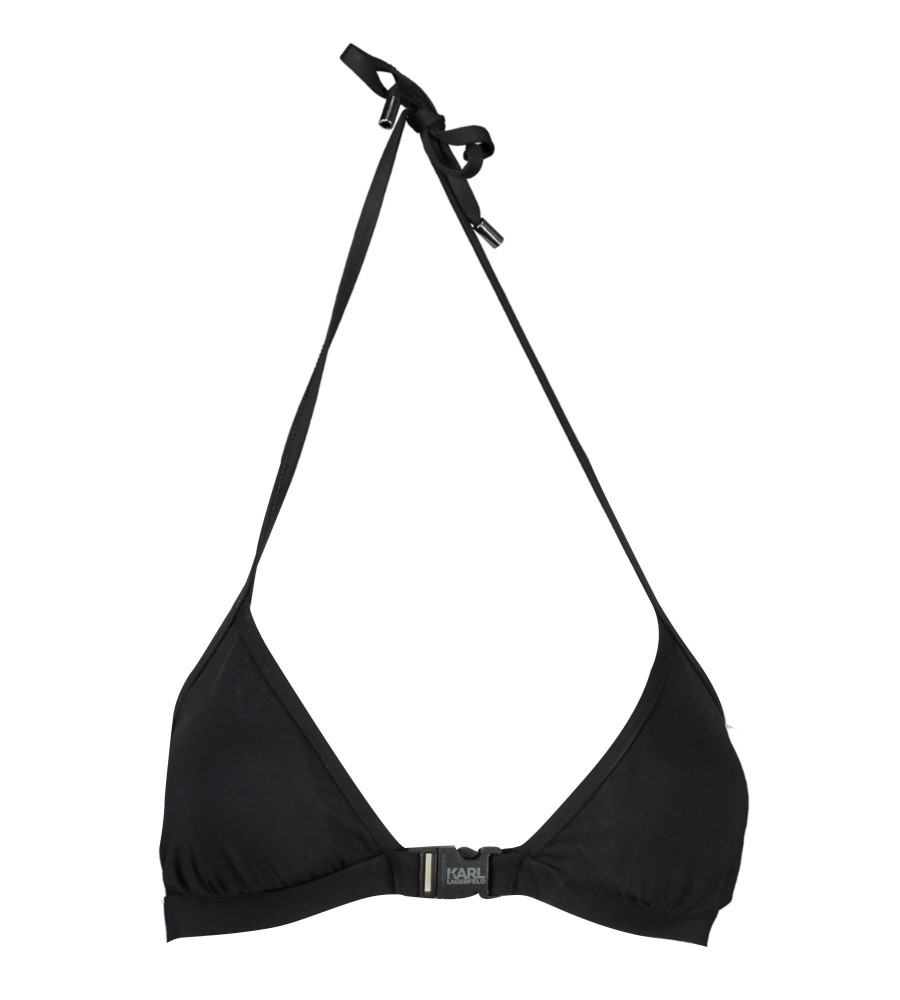 trikampis maudymosi kostiumėlis, pamušalu vidus, nuimamas paminkštinimas, užsegimas kaklu, užsegimas raišteliu ir segtuku, kontrastingos detalės, logotipas